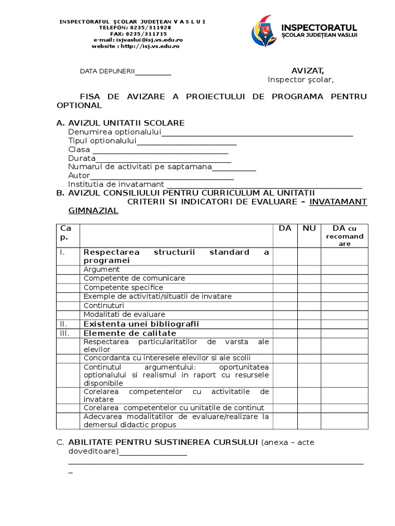 Fisa Optional Gimnazial Nou