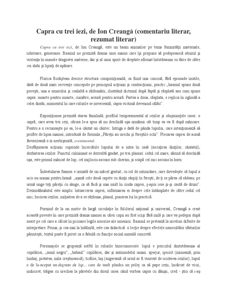 Rezumat Poveste Capra Cu Trei Iezi De Ion Creangă Rezumate Cărți Citeste Cărți Online Pdf Caracterizări Referate Si Comentarii Cărți