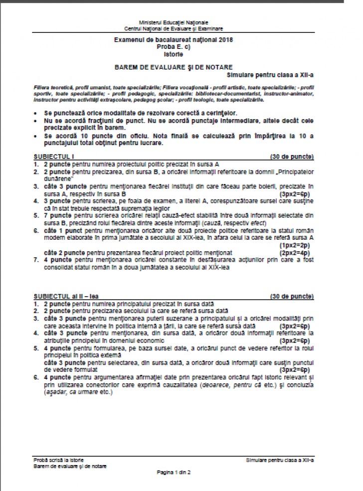 Bacalaureat 2019 Ce Subiecte Au Picat La Istorie Vezi Pdf