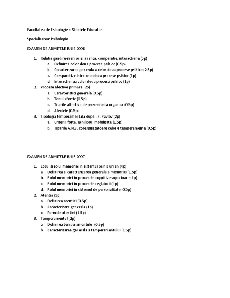 Listafacultati Ro Subiecte Admitere Universitatea Bucuresti Psihologie 2009