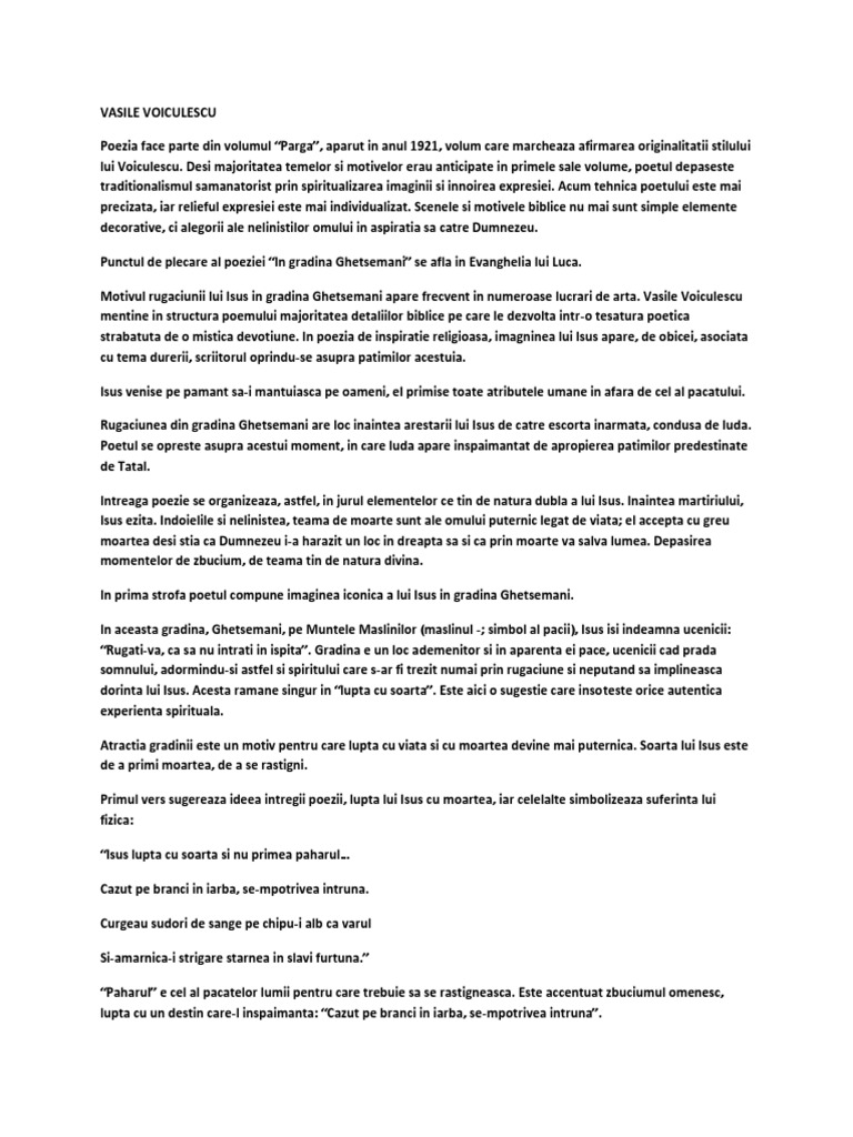 Referat In Gradina Ghetsemani De Vasile Voiculescu 334234 Graduo